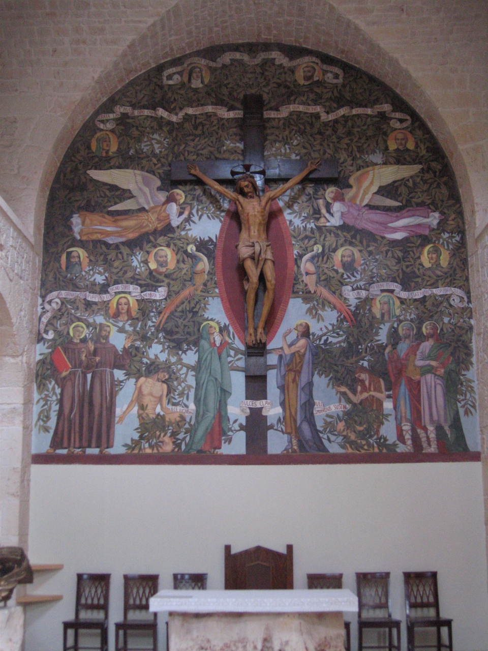 モンティ地区の丘の上に建つ教会です。坂道を登りながら散策すると突き当りに立っています。無料で入場できますので,教会内部の見学もかねて,ちょっと一息つくにはいい場所だと思います。教会内部はシンプルですが,特徴のある教会です。イタリア国内でも教会のつくりはさまざまだと感じました。
