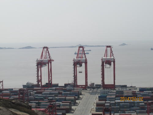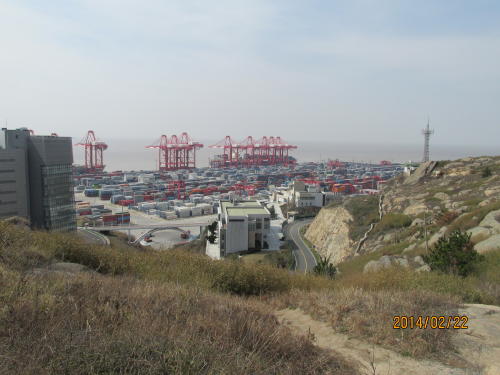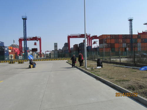 洋山専線は東海大橋を通ってコンテナヤードの小洋山まで行きます。待っても来ないのでワゴン車の乗合白タクに乗って行きました。バス代は12元、白タクは20元ですので良心的な値段です。因みにタクシーに聞いたら120元だそうで6人で割れば20元です。