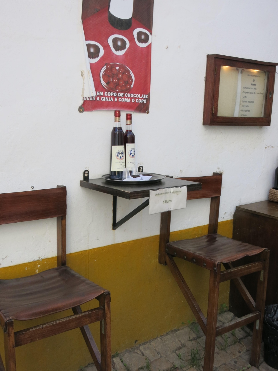 あっちこっちのお店で1ユーロくらいで出していますが、アルコールは結構強いですがチョコカップに入れてくれるジンジーニャがおいしいです。