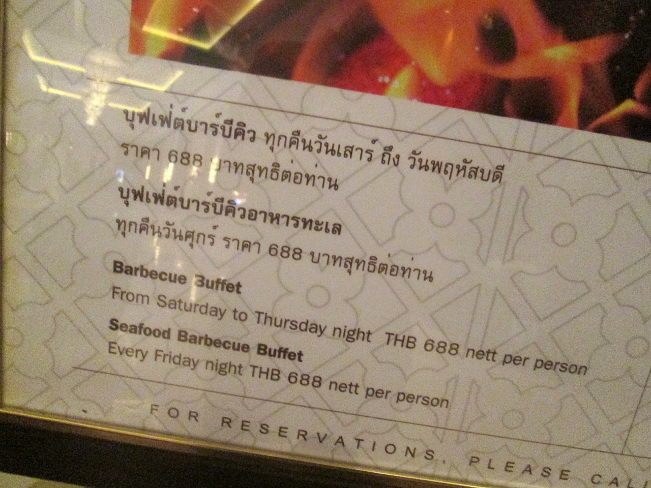 - BBQディナービュッフェで688THB(税・サービス料込)で質の高い料理とサービス…満足です