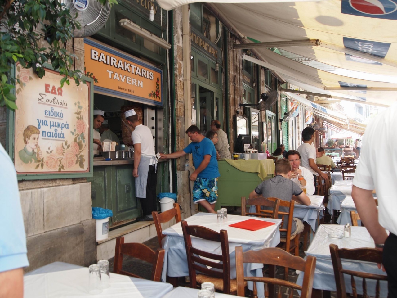 ギロピタをテイクアウトしました。2ユーロと安いのですが、量は少ないと思います。数年前に店内で食事しましたが、写真がたくさん飾ってあって、店員さんがきさくで感じが良かったです。お昼前の時間帯でしたが、テーブルは結構混んでいました。