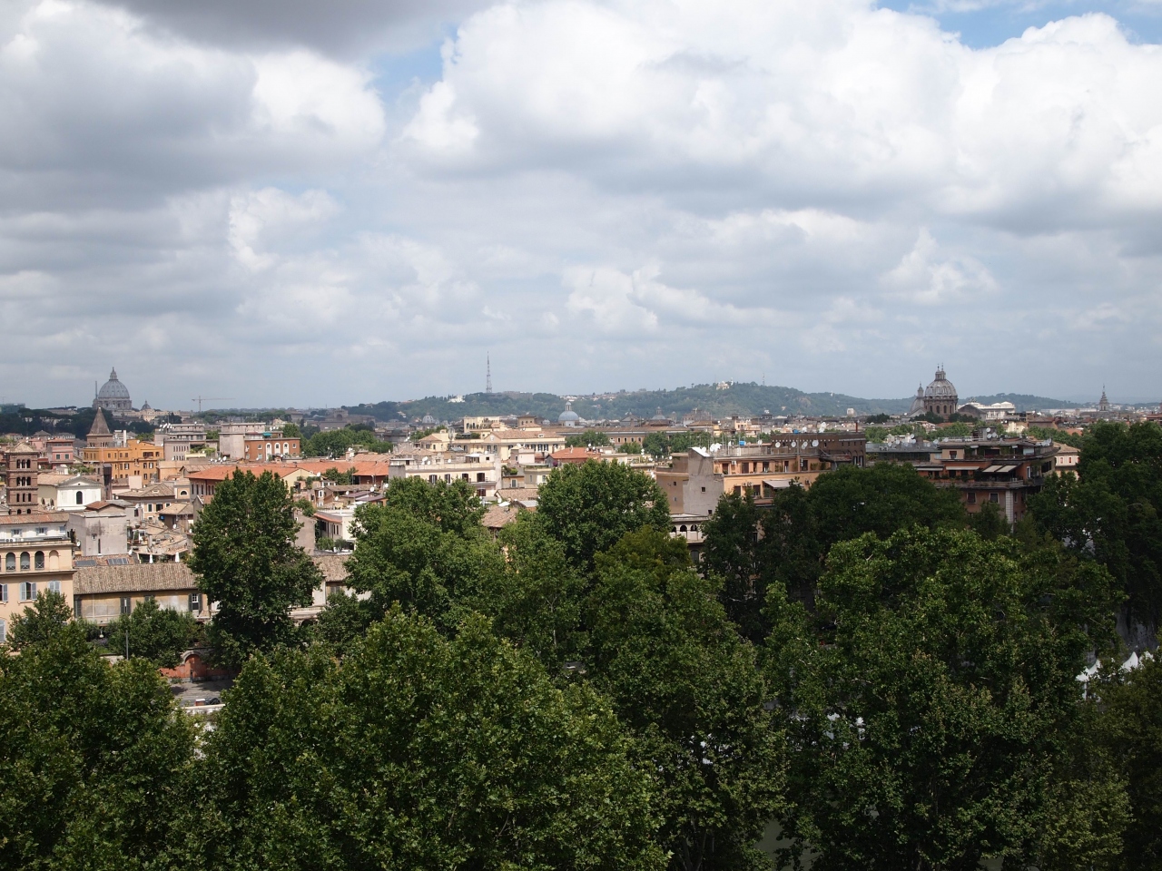 サンタ・サビーナ聖堂の隣が公園のようになっていて、テヴェレ川を見下ろす展望台があります。そこからローマの町の建物を見ることができます。その脇の道はテヴェレ川のほうへ降りていく石畳の坂道で、とても雰囲気のある道になっています。アヴェンティーノの丘には立派な家やホテル、エジプト大使館などがありました。