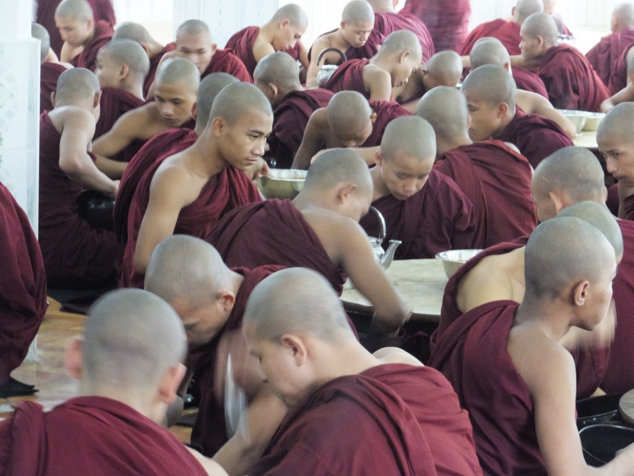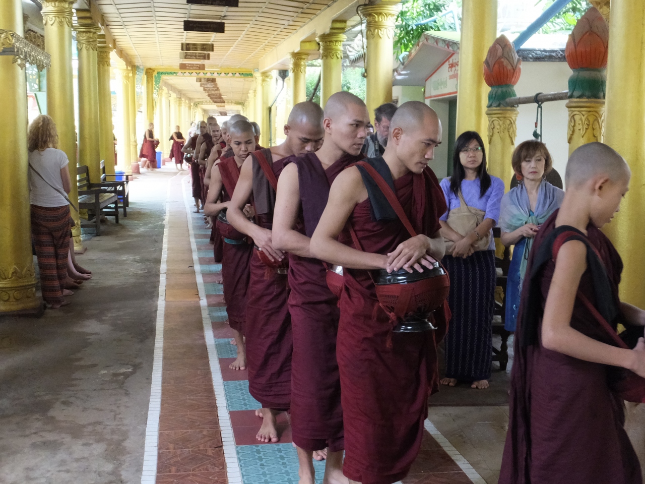 11時に合図の金がなると、たくさんの僧侶が