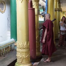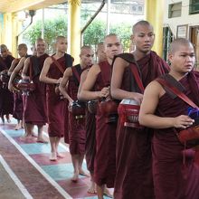 僧侶にご飯をよそうことができます。