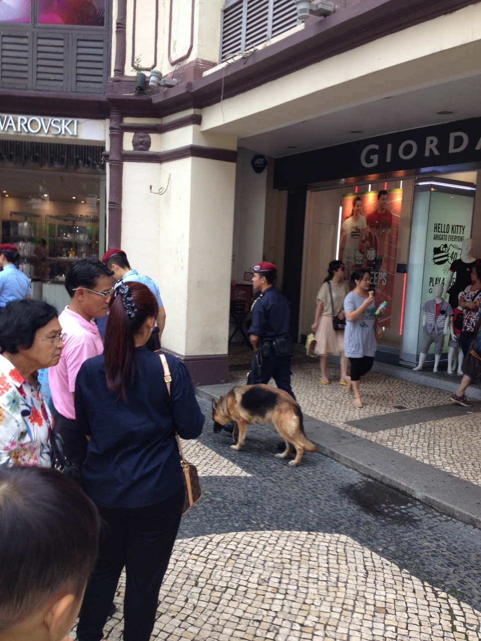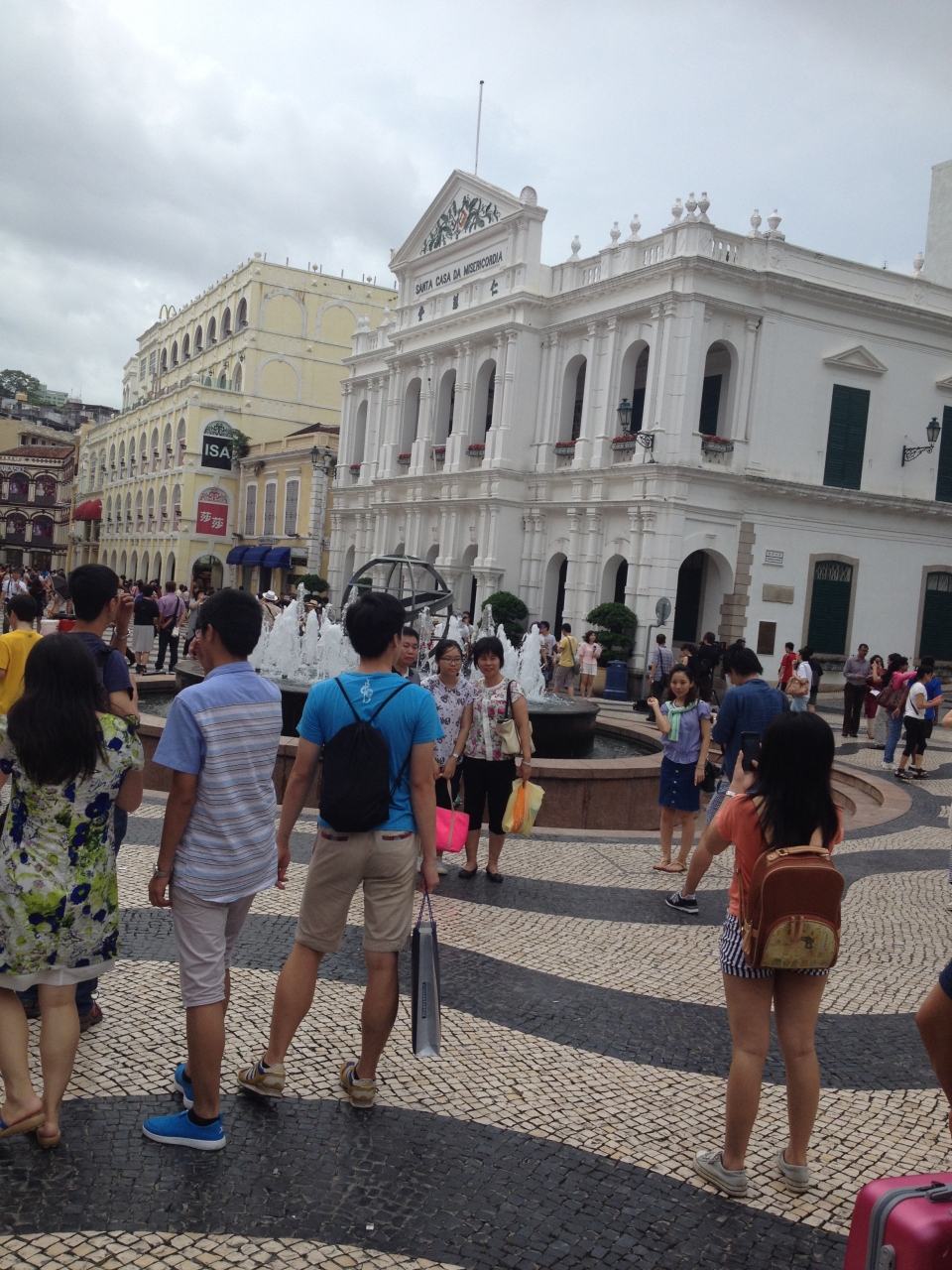 中国語で表示された観光案内には必ずポルトガル語も併記されています。観光客で賑わっている広場に圧倒的に多い中国人に混じってポルトガル人らしき観光客もいました。中国の特別区ですがマカオは不思議な町です。この広場には歴史的な建物も残されており周辺の見学も楽しいものでした。石畳が敷かれた坂道は本当にヨーロッパの街並をあるいているようでした。