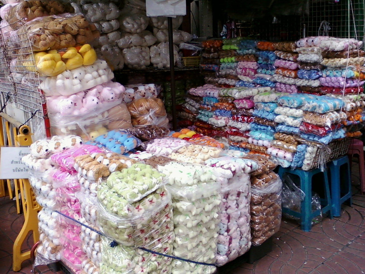 約一年半ぶりに訪れたこのサンペーン レーン市場は東西に長く伸びた商店街で、小物やぬいぐるみの問屋街です。問屋街と言っても小売販売をしているお店も多くあり、ショッピングに行っても楽しめると思います。中にはコピー商品を売る店もあるようで、カメラ撮影NGと言われたお店がありました。商品を買うときには注意して購入する必要があると思います。