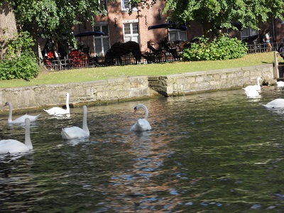 水の都ブルージュの魅力は何といっても運河です。路から見る街並みや景色とはまた別モノです。約30分ですが、ドライバーさんがガイドも兼ねて説明してくださいます(英語やスペイン語ですが‥)。途中、橋の下を何度か通過しますが、結構ギリギリの場所がありましたので、男性で背の高い方はご注意ください。