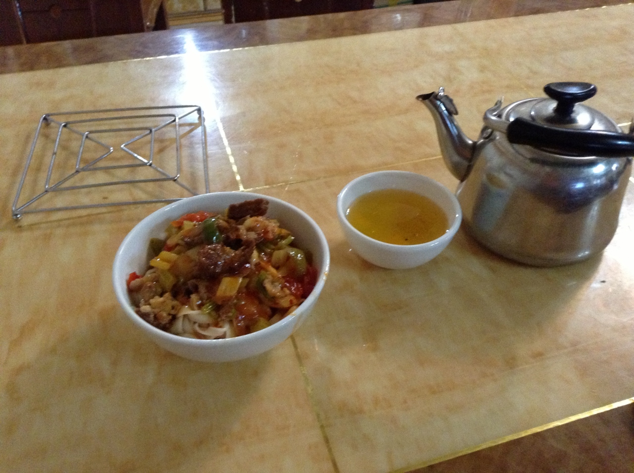 ガイドブックを持って、このお店の前できょろきょろしていると、店内から日本語で声を掛けられて中に入りました。おいしいラグメンとカバブをいただきました。
