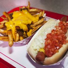 ロサンゼルスのお店のように並ばなくても食べられます。滞在中2回行きました。1回目に注文したチリチーズドックは美味しかったのですが、具の重みにパンが耐えられず、食べるのに苦労しました。なので、2回目は食べやすそうなチリチーズフライにしてみました。こちらは食べやすく、ポテトとの相性もGOODでした!お値段は少し高めでしたが、ラスベガスに行ったらまた行くと思います。