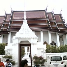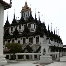 このワット・ラチャナダーは民主記念塔ロータリー横にある、白く綺麗な寺院です。本堂後ろにある建物は黒い屋根がいっぱいある変わった造りで、他とは違う面白い建物でした。カオサンロードから徒歩圏内なので、外国人観光客にも人気のようで多く訪れていました。