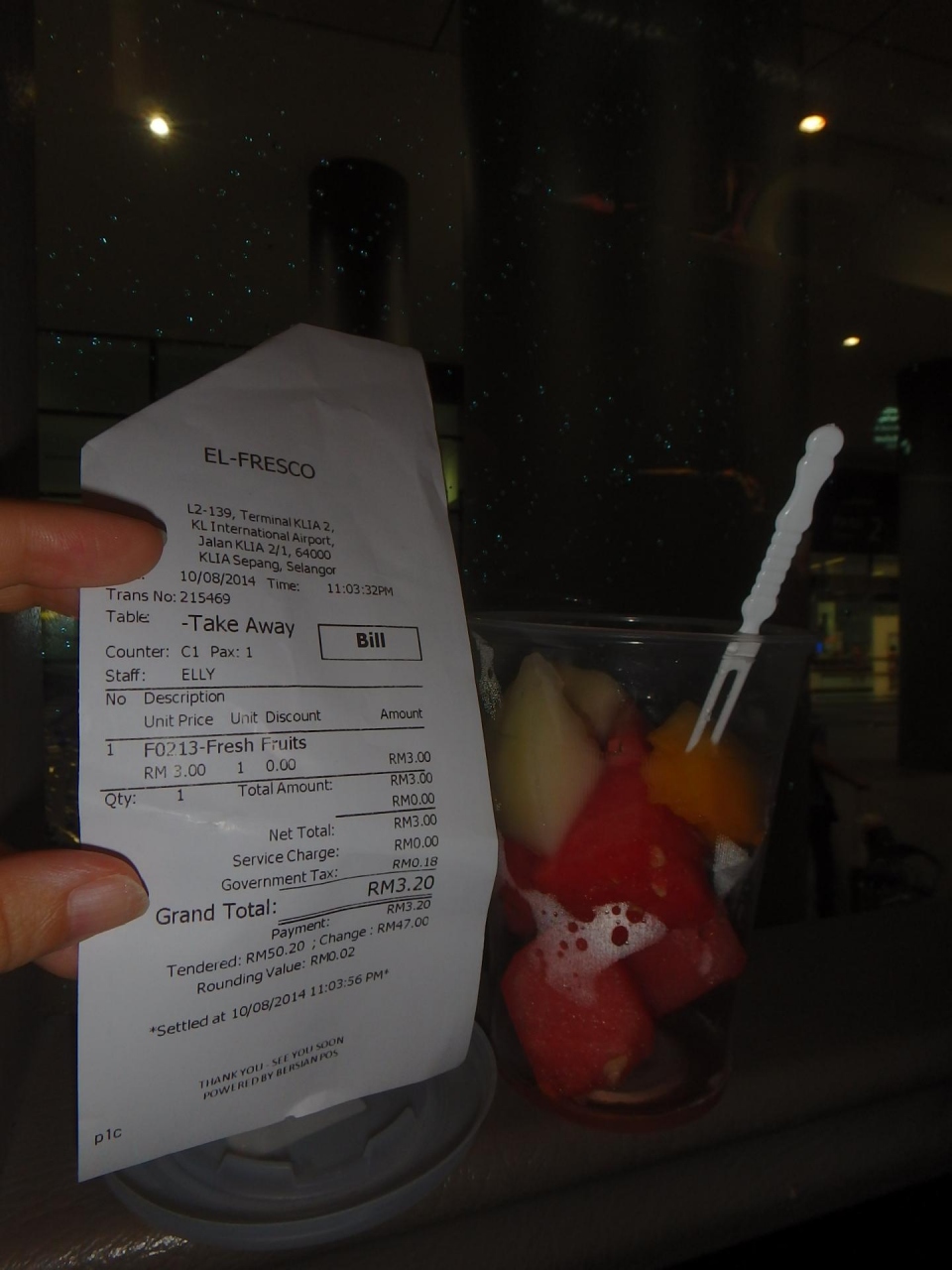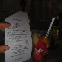 行きも帰りもスーパーでカットフルーツを購入。なかなか甘くておいしかったんですが、表示価格は税抜きです。別途6%の課税があるのでご注意を。
