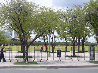 ワットプラケオ(王宮)の道路向かいにある広場。芝生が広がっている以外、特に特徴はないように思ったが、一辺が200メートルくらいある四角形の敷地で、眺望が開けていた。目の前には、物売りや、トゥクトゥクでの観光をしつこく勧誘してくる人がいました。