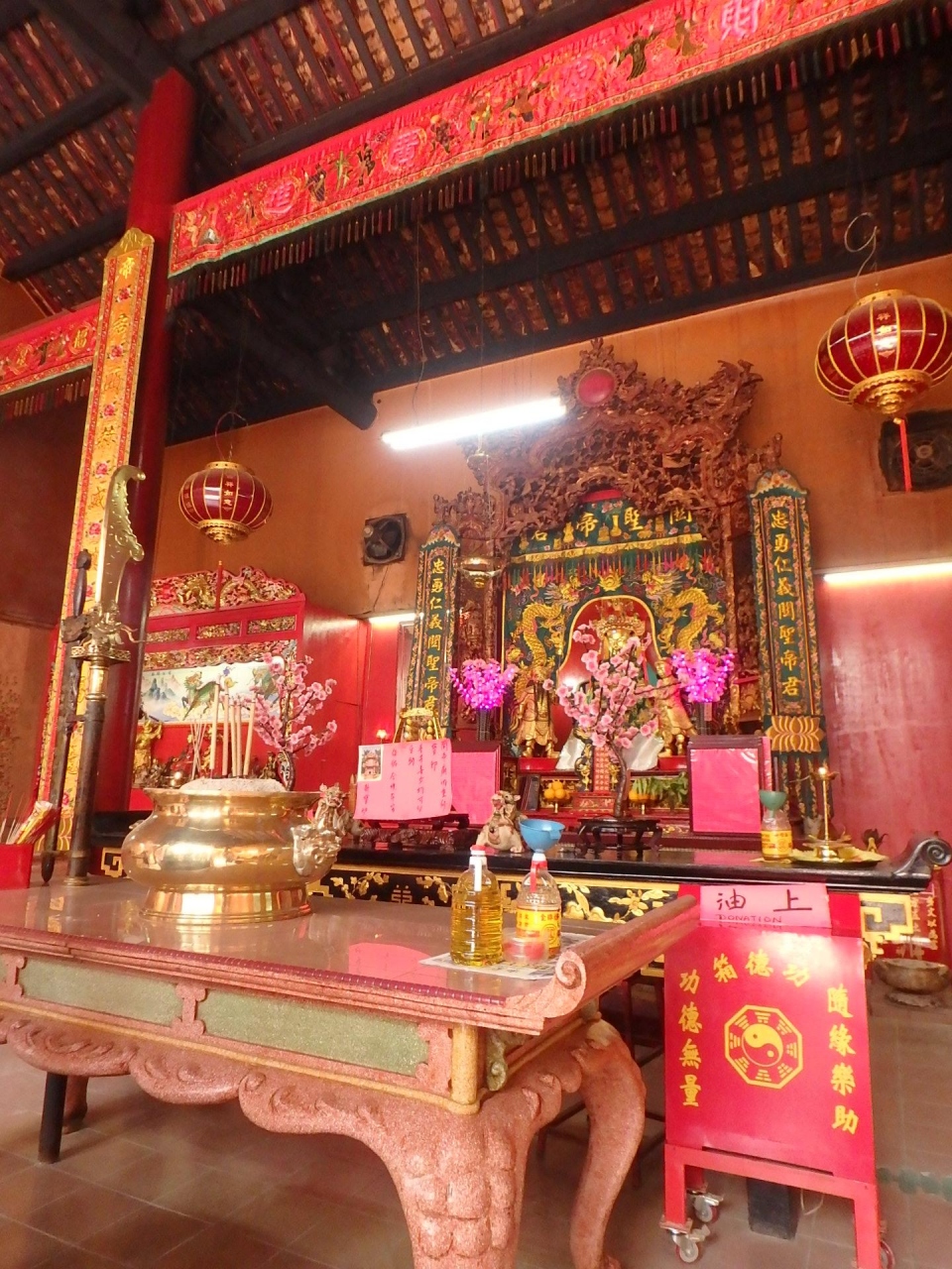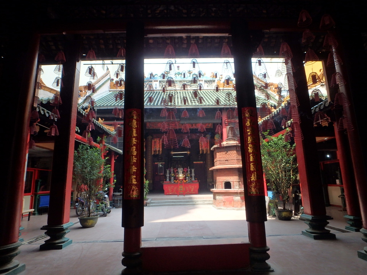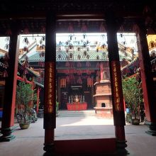 真っ赤な壁に、渦巻き状のお線香や中華風のエキゾチックなお供え物なども見ていて楽しいです。
