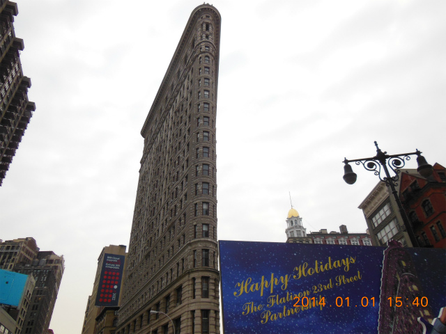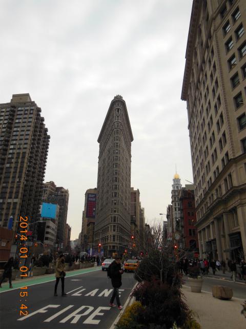 当時の世界最長ビルらしいですが、高さよりもフラットアイアンという名称にぴったりな尖った三角形形状が楽しいです。5番街にこんな形のビルが残っているのも楽しいし。道の分かれ目にぴったりハマり込んでいるようでもあり景色に溶け込んでいます。