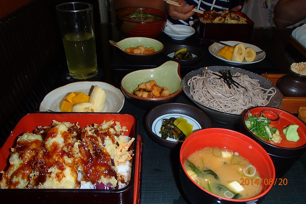 店内は地元の婦人会らしき団体さん20名弱と韓国人らしりグループがいました。席に着くとおしぼりと冷茶が持ってこられ久しぶりの日本サービスに気を良くして注文しました。どんぶりと麺のにコーヒーがつくセット(一番安いやつ)を注文。どんぶりは親子丼とエビ天丼、麺はうどんやざるそばをいただきましたが、それぞれ味は日本で食べるのと遜色なしでお米もジャポニカでした。海外で日本料理店に入ると時々「?」でしたが、ここは違いました。