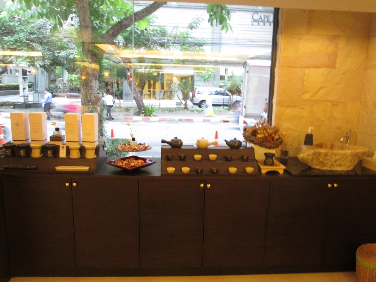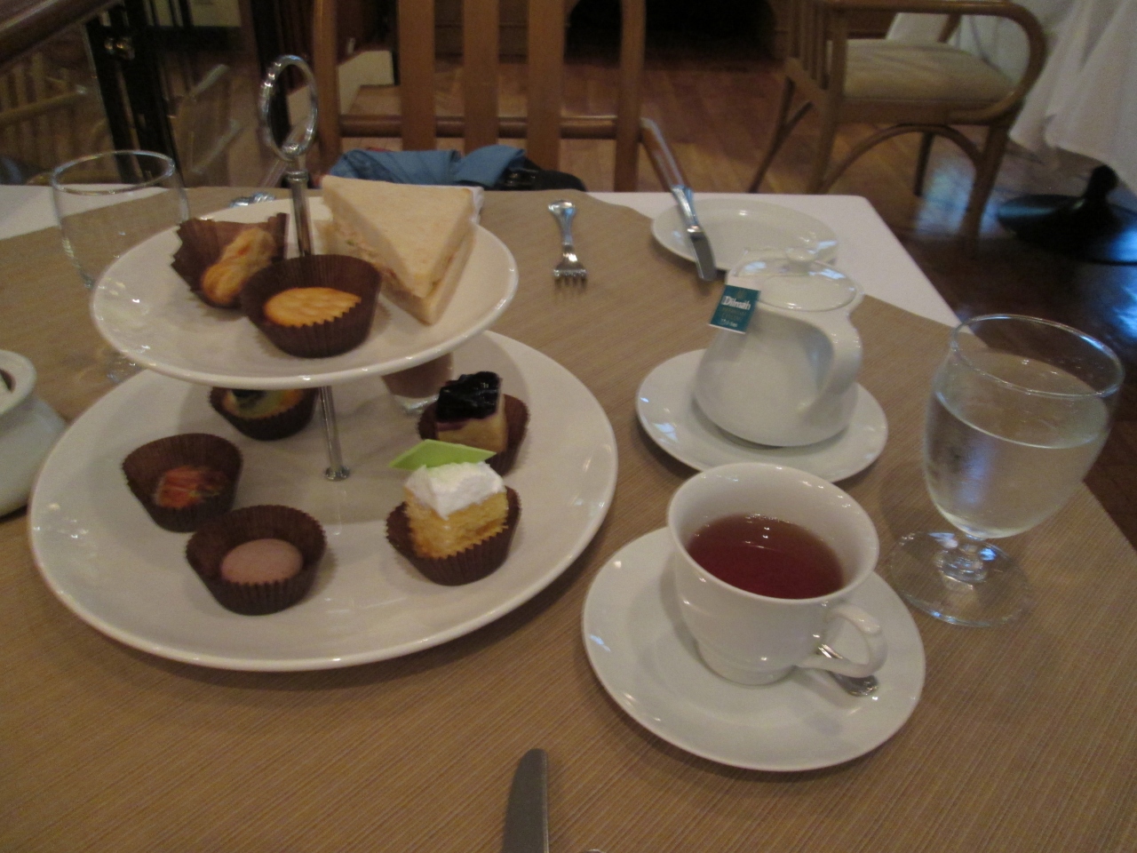 ディオラランスアンが企画するパッケージコースを利用すると、終了後に通りを挟んだ向かいにあるホテルでアフタヌーンティーが利用できます。さらに、JCBカードで精算するとストールをプレゼントとしてもらいました。