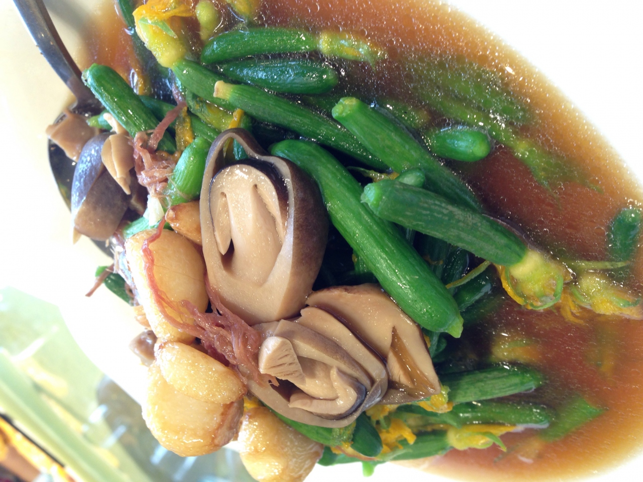 酸辣湯は何度もおかわりしたくなる日本人向けの味。名前はわかりませんが 小さいキュウリとフクロダケの炒め煮はさっぱりと頂けて見た目にも可愛いですよ^^