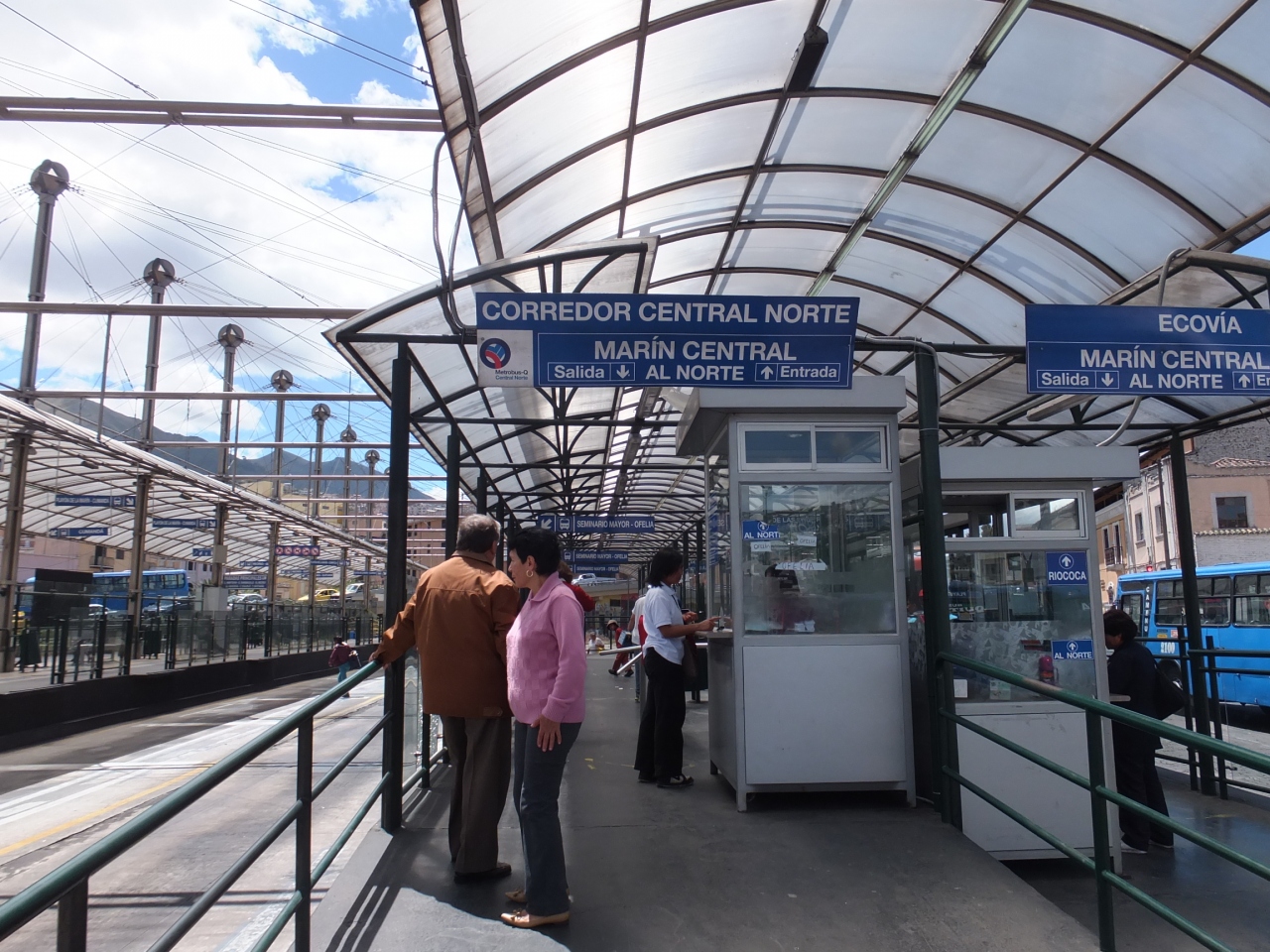 Ofeliaのバスターミナルに到着すると、ターミナルの一番東側の端にあるプラットフォームに移動して、バスのフロントガラスに"Mittad del Mundo"と書かれているバスに乗車して下さい。同じターミナルの中に有るのでゲートから外に出ない様に注意して下さい (一度出てしまうとまた25C取られます)