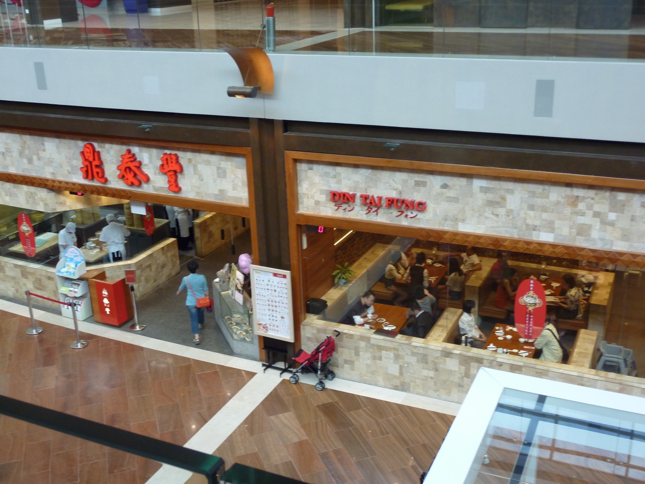 ショップス・アット・マリーナ・ベイ・サンズの中にある、台北に本店がある鼎泰豊のシンガポール店です。いつもかなり混んでいて、時として待たされますが、客の回転が速く、あまり長く待つことはありません。ガラス越しに小龍包を作っている作業場が見られ、待ち時間も短く感じます。本店に比べ、店内は明るく、1フロアで内装もきれいです。
