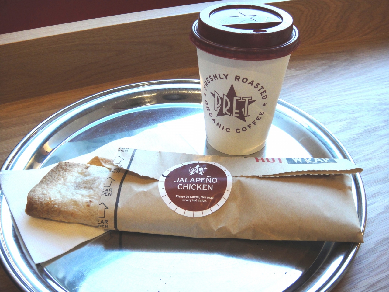 チェーン店のカフェです。コーヒーや紅茶はもちろん、パンやケーキ、デザートのほか、チキンやサラダなどがトッピングされたサンドイッチ、ラップなどがあり、軽く食べたいと思ったときに便利なお店です。イートイン、テイクアウトともできますが、席は少なめです。