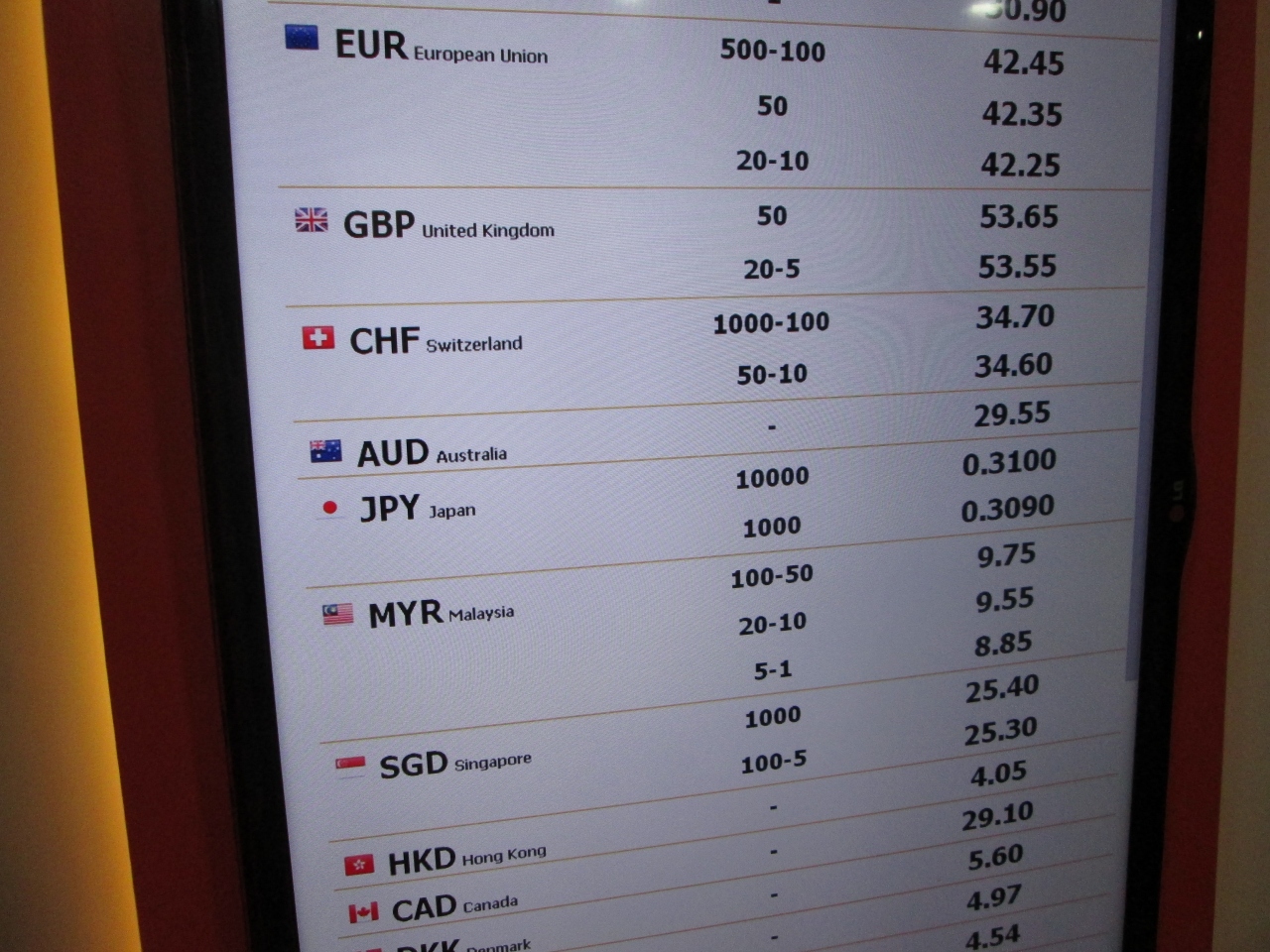 チットロム駅のサイアム駅側の改札口付近には両替店スーパーリッチの支店がリニューアルオープンしました。この支店でレートを確認しタニヤ通りのレートと比較し、どちらか良い方で両替します。ここで滞在中の標準的なレートを確認できるのでオープンしてもらい助かります。