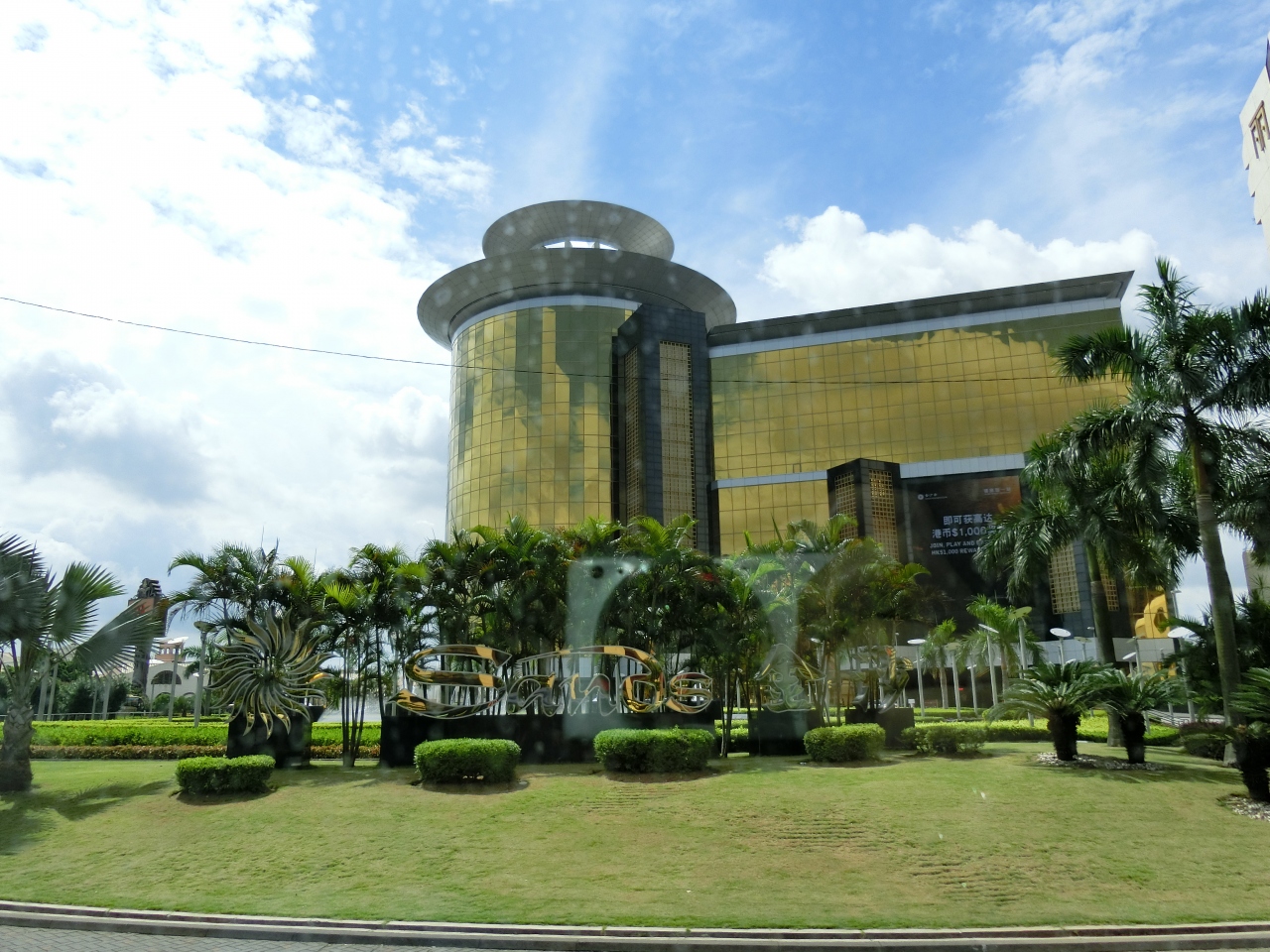 金色に輝くマカオのシンボルの一つです。マカオフェリーターミナルに近く、多くの場所に無料大型バスが出ています。同じ系列のタイバ島のベネチアンとは、10分おきぐらいにバスがいかかっています。
