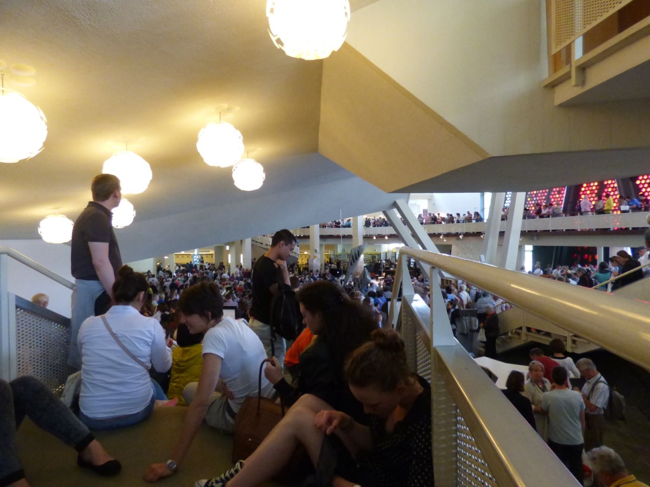 しょうがないから午後1時半からのガイド付きツアーに行こうと思って到着したらたくさんの人がいます。えっ!?こんなにたくさんガイド付きツアーに来るの?と驚いて、前に並んでいたおばさんに聞いたら(もちろん独語じゃなくて英語です、私、独語わかりません)毎週火曜日は正午からフリーコンサートの扉が開くんだってんです。え、そりゃ知らなかったと思わずわくわくで並びます。どんな人がどんなところで演奏するんだろうかと。これでホールが見られちゃったら、もうガイド付きツアーもいらないし。