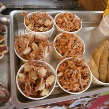 カニの唐揚げ、イカの唐揚げ、(それぞれ各100元)できたものでなく揚げ直してくれて、食べやすいように切ってくれて、何かかけるかと聞かれたがよくわからず、塩コショウみたいのをかけてもらいとっても美味しかったです。