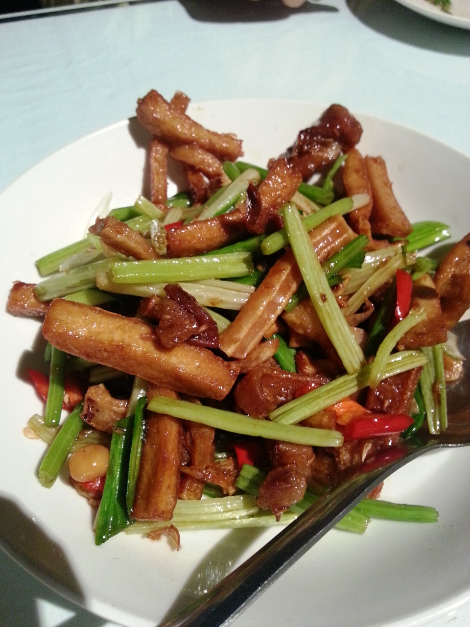 「客家小炒」はイカをメインに野菜とこちらにも細切りの豆腐が少々入っていて、食感の変化が楽しめイカの風味がお酒によく合いました。