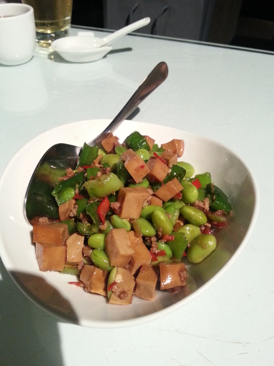 その他、青菜炒め、枝豆と青唐辛子と豆腐の炒め和えと、ビールに合いそうなお料理を中心にいただきました。