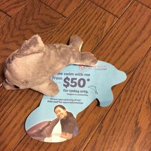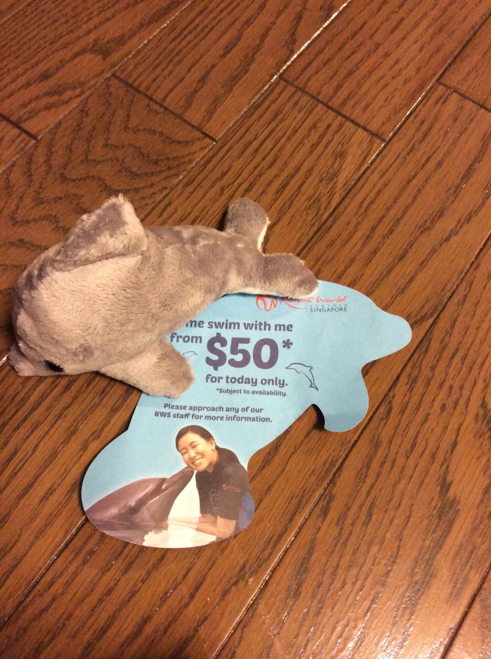 小さなヌイグルミ(イルカと遊ばない?的なコマーシャルが書いてあるイルカ)