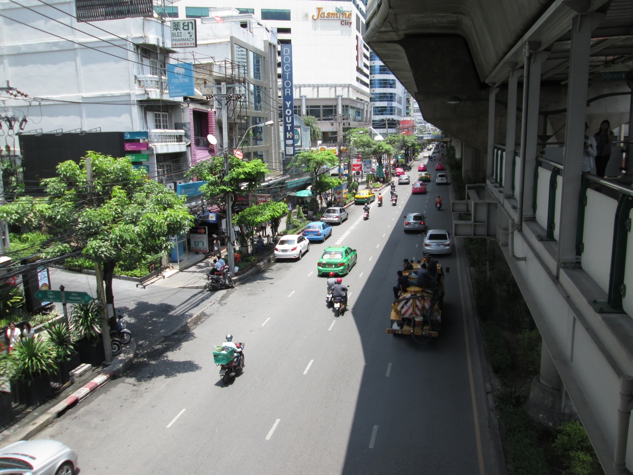 プルンチット・ナーナーからプロンポン・トンロー界隈までは徒歩で移動することが多いです。通りの北側が奇数番号のソイ、南側が偶数番号のソイで、どちらかと言えば、奇数側は通りに面している店舗が充実しており、夜遅くなっても徒歩で歩けます。偶数側にも通りに面している店舗はあるが公園があったり暗く寂しい箇所があるので、夜は注意が必要です。