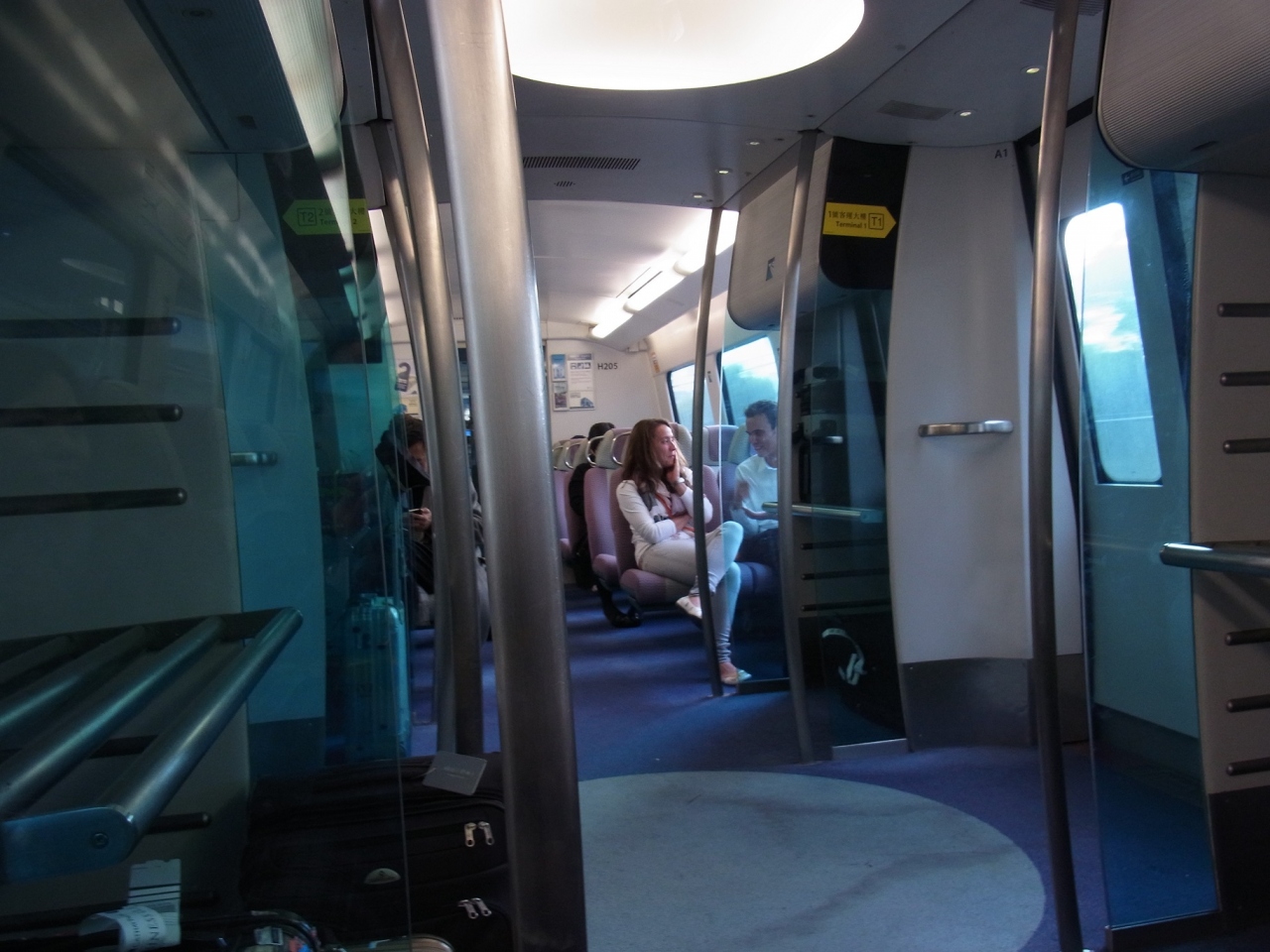 空港→九龍→青衣→セントラルを高速シャトルのような電車です。市内まで約30もかからずに出ることが出来ます。私は九龍で降りましたが、そこから主要ホテルまでは無料のシャトルバスが出ていて、ツーリストにとっては便利な手段だと思いました。また帰りは、九龍駅でチェックインができ、その場で荷物も預けられるので身軽で空港まで戻ることが出来ます。