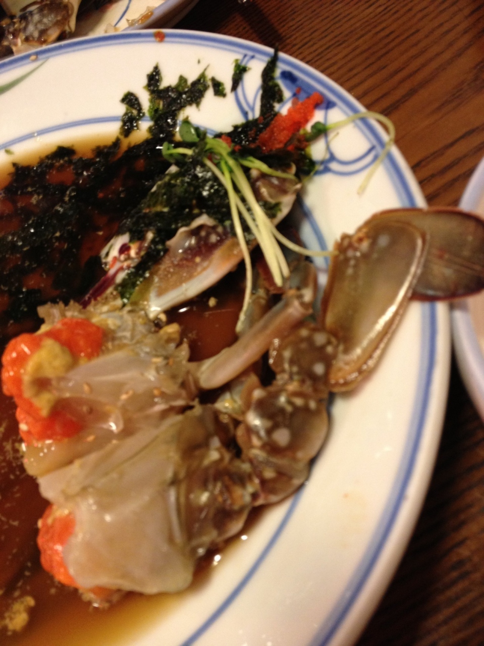 カンジャンケジャンは、臭みもなく美味しかったです。二人で1匹だと、少し寂しいかもしれません。