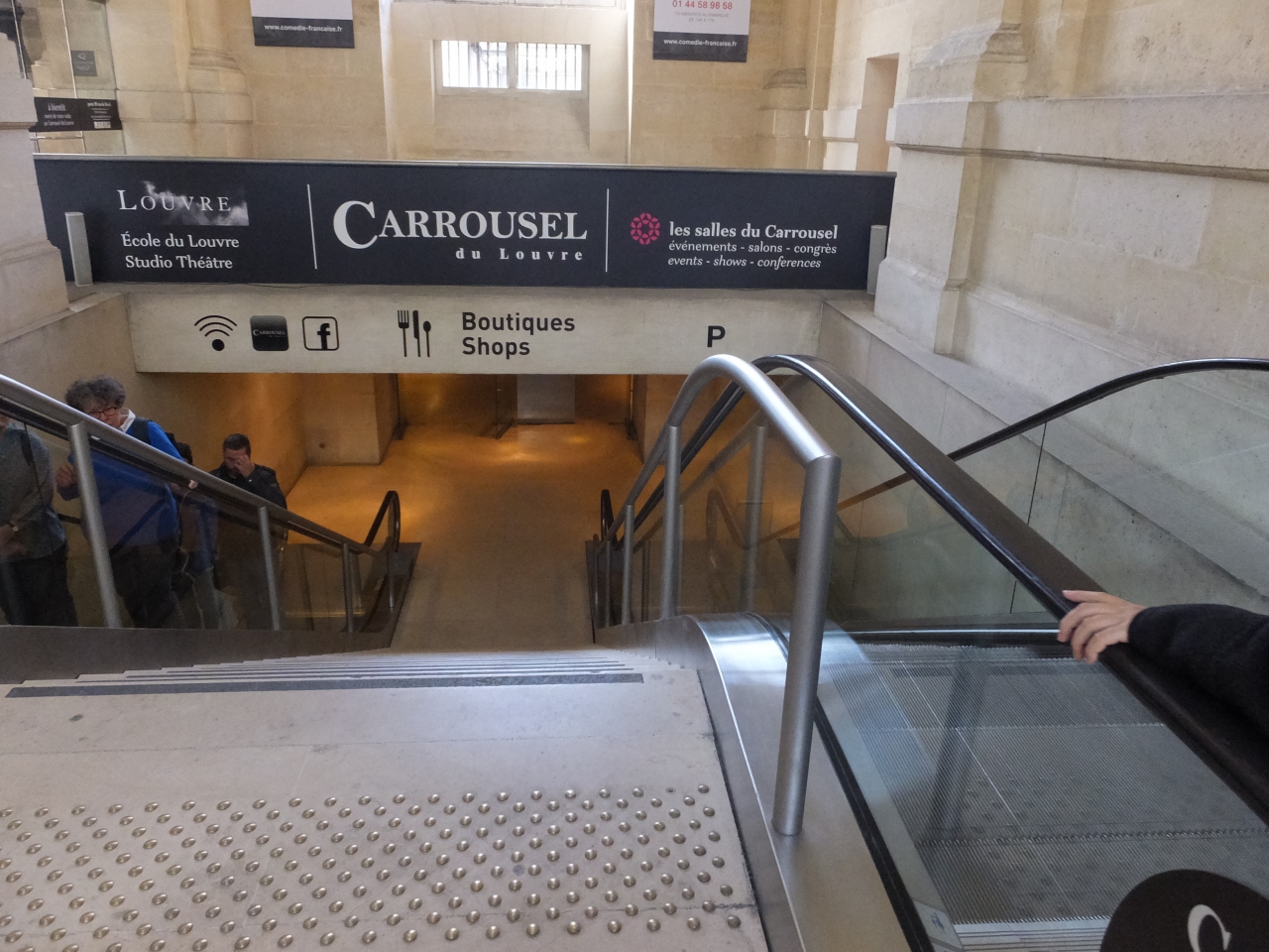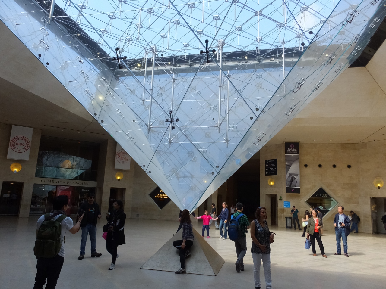 なお、入場する際はルーブル美術館北側のリヴォリ通り99番入口(赤いひさしの入口)から地下へ入ってどんどん進み、逆さピラミッドの下へ出てそこから入場するコースが入場待ちの混雑がありません。また、ルーブル美術館への入口は、3つの建物(翼)ごとにありますが、リシュルー翼から入るとエスカレーターがあるので楽です。