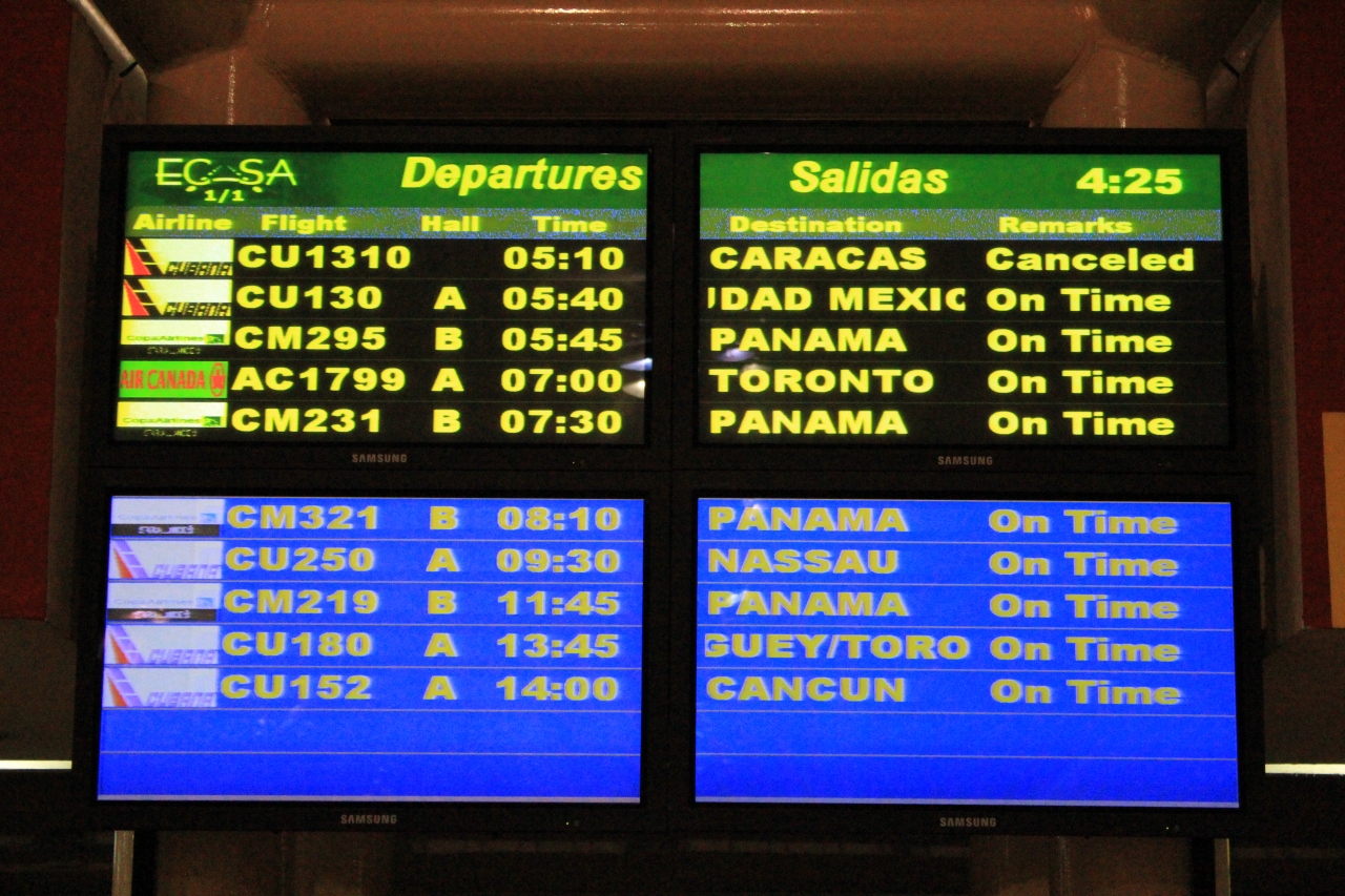 出発フロアーに到着すると、開いているのか開いていないのかわからないようなカウンターが並んでおり、そこでチェックインを済ませ、空港税を支払い出国審査を受けます。