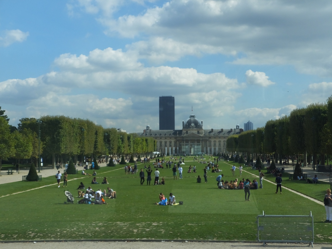 エッフェル塔から見て、シャイヨ宮やセーヌ川と反対の方にある広い公園です。広い芝生があり思い思いにくつろいでいるたくさんの人たちの姿を見ることができます。ここからエッフェル塔を写真で撮ると、芝生の緑と青い空に映えたエッフェル塔の写真になります。ビッグバスの停留所もあります。