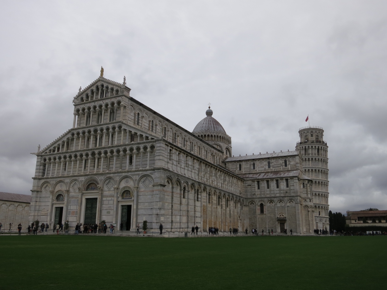 その理由はしっかりと手入れされている美しい緑の芝生に斜塔や洗礼堂の真っ白な建物のコントラスト♪