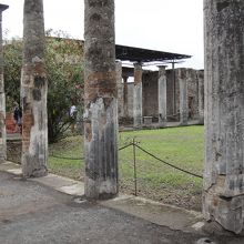 ポンペイ最大の貴族の邸宅だったそうです。紀元前2世紀初めの建物で、その広さは2970?といわれています。円柱が並ぶ回廊が中庭を取り囲んでいて、立派な建物です。ここには名前の由来となった踊る牧神像があるそうですが、80cmという小ささのためか、よくわかりませんでした。