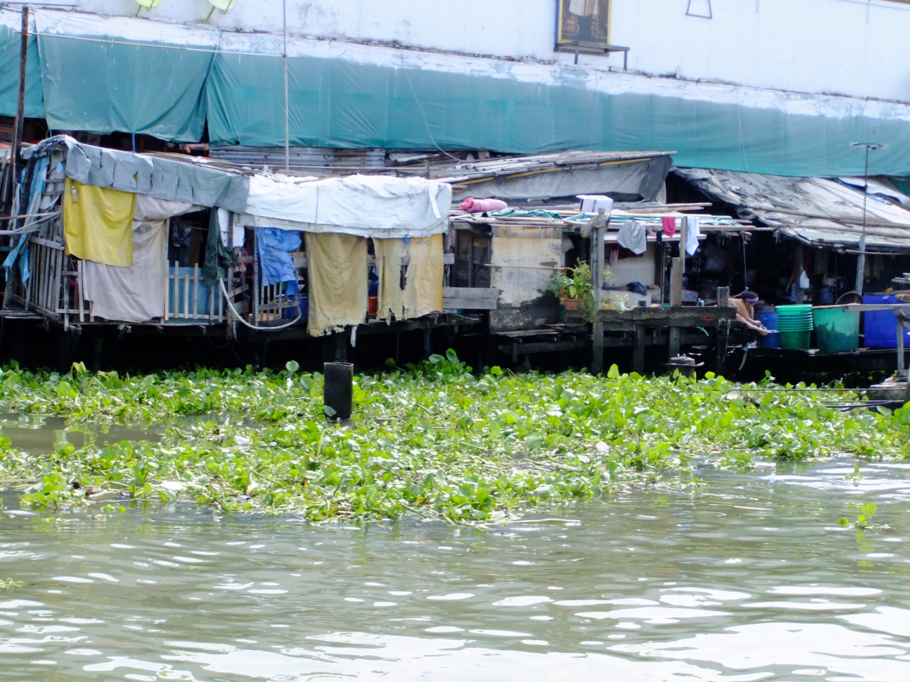 行きは乗合、帰りはチャーターで川を往復しましたが、乗り物の違いで見える景色の感じ方も変わりました。乗合に乗ると地元の人の生活の一部に自分が溶け込んだような気分で周りの流れる景色を見れます。チャーターに乗ると・・・・暴走族のような荒々しい運転で「かっとび~」で川を突っ切ります。あの汚い川の水が飛び跳ねるのは勘弁ですが、気分爽快です。