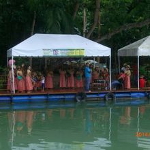 バイキング形式のランチ・生バンド付のクルーズ 450₱(ソフトドリンク付) 所要時間は1時間。ロボック川を生バンドの演奏を聴きながらノンビリ川下り、復路にはオバチャン(オバーチャン)バンドの待つ桟橋に立ち寄り一緒に踊る余興がある。