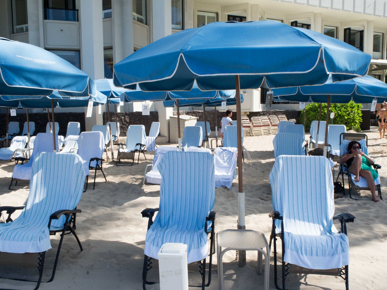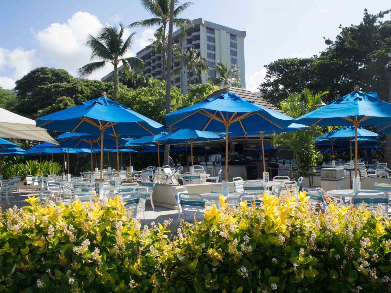 ヒルトンハワイアンビレッジのビーチからカピオラニ公園の前のビーチまで海沿いにずっと歩くことができます。ホテルがずーっと隣接しているので、ホテルが変るとその前のビーチパラソルの色も変わりそれを眺めながらの散歩がとても楽しいです。シェラトンの前の海にはウミガメが来ているのを見たことがあります。ヒルトンの白いパラソルからはじまり、ハレコアの青、モアナサーフライダーのピンク スタービーチクラブの黄色と色がかわり楽しい気分になります。