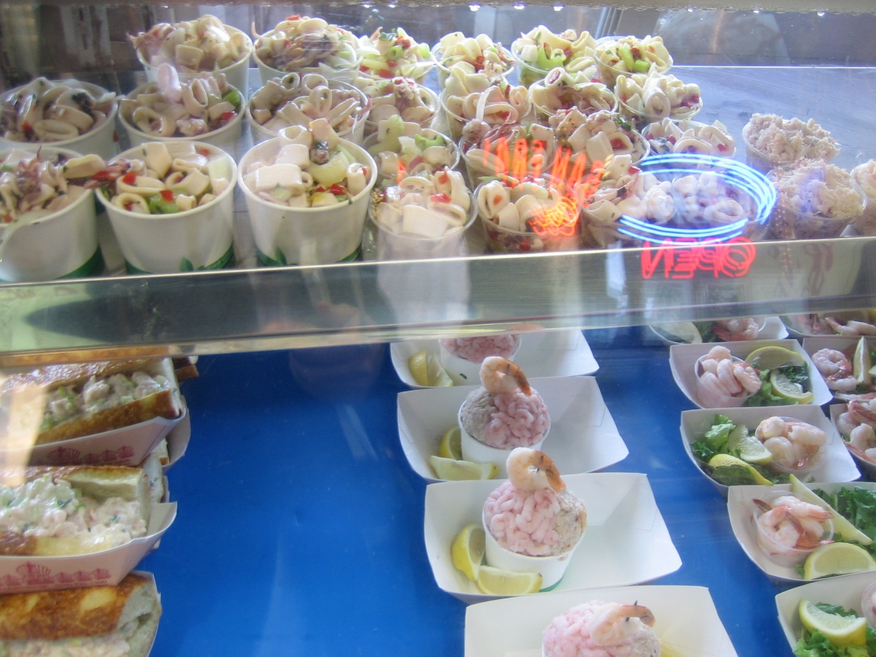 サンフランシスコ北の海辺沿い。常に観光客がたくさんいて賑やかです。お店、レストラン、屋台などが数多くあって、ショッピングや食事が楽しめます。私が気に入ったのが屋台。カニ肉やシーフードの揚げ物などが食べられ、きちんとしたレストランで食べるより割安です。