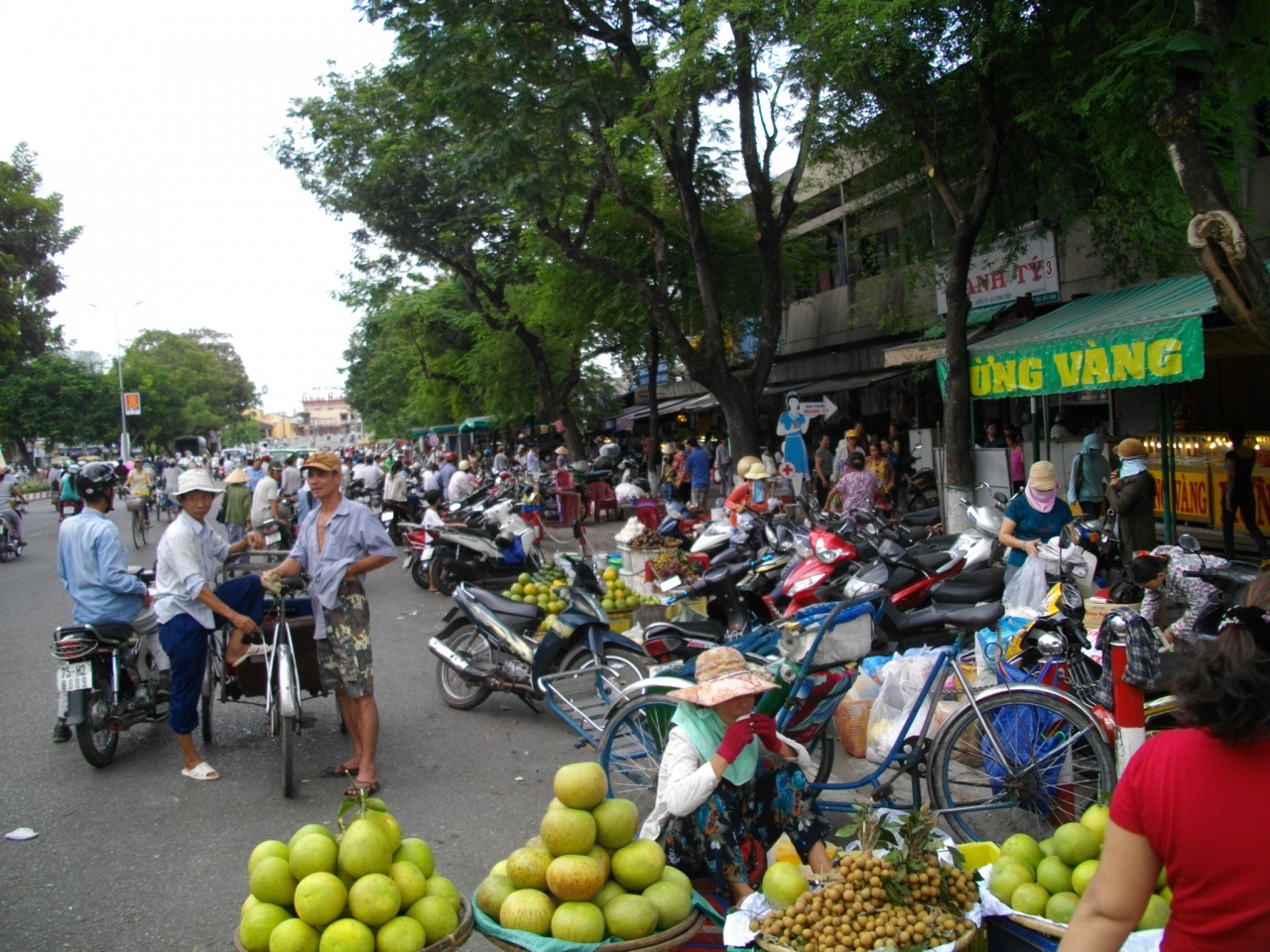 中心部からチャンティアン橋を渡り東へ進んだところにある。酷暑の中、徒歩で行ったが疲れた。市場は道路沿いに長い2階建の古い建物。道路側はもちろん、奥にも小さなお店がぎっしりあって、食料品、雑貨、衣料品がぎっしりと積んである。中は換気が悪く大変暑かったが、アジアらしい雰囲気で活気がある。地元の人達の生活に関心がある方には、訪問することをお勧めする。