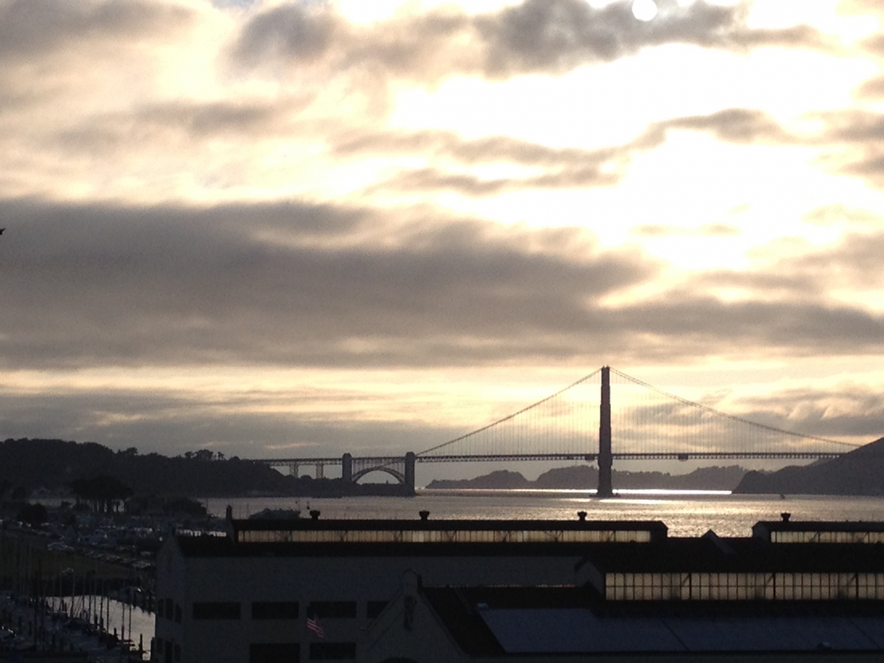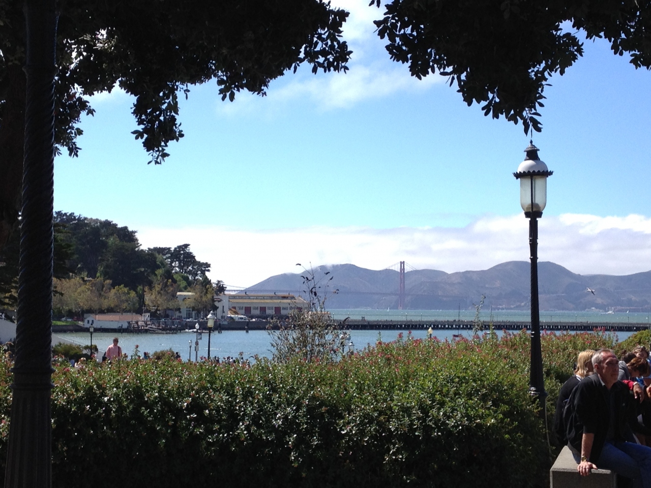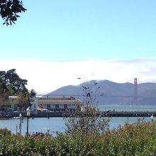 サンフランシスコといえばゴールデンゲートブリッジの景色ははずせないところ。フォートメイソンから北西側にみえる景色を楽しみました。幸い天気もよく、青い海と空に赤い橋がきれに映えて、見応えのある風景が目の前に展開。きれいでした。マリーナの坂をのぼったところからの風景も、より大きく橋がみえてお勧めです。