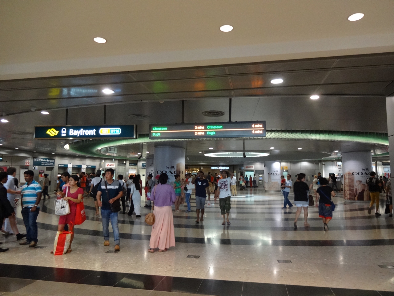 マリーナベイサンズに直結する駅です。この駅ができたことにより利便性が向上しました。ただし時間帯によっては券売機が非常に混雑するため、カジノで遊んだ後に空港へ直行する方は、時間に余裕をもった移動を強くおすすめします。