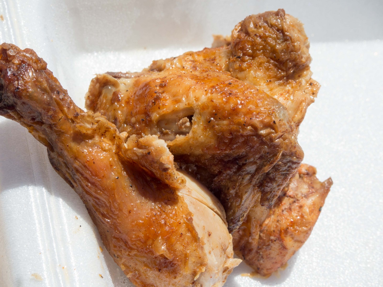 けっこうダイナミックに煙りがあがっていて 炭火100パーでしかもおじさん素手で熱そうな炭触ってるし、おもわず買ってしまいました。ビーチで食べて美味しかったです。ハーフで6ドル 一羽10ドル なんかソースとかオプションありました。