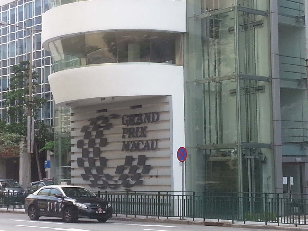 マカオグランプリって、小さいころにテレビで見た記憶はあったけどココを走ってんのか?ってくらいの普通の市街地道路でした。開催時期ではありませんでしたが、マカオグランプリ看板があってちょっと感動。こんなまじかで見られたら最高だと思いますね。