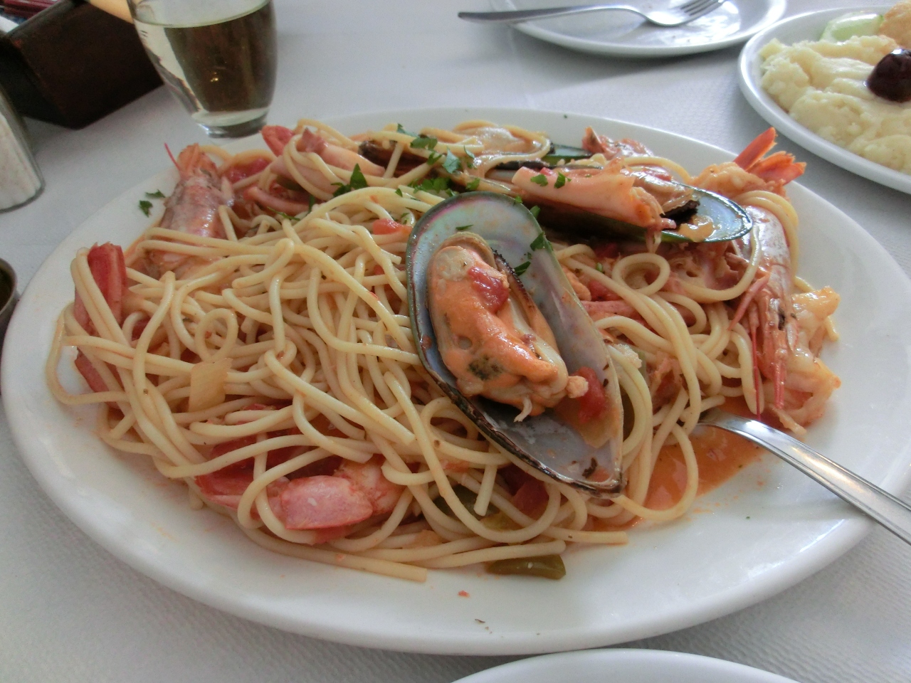 店員からシーフードパスタを薦められましたが、ギリシャのパスタはソフト麺のようなので、アルデンテ好きは避けた方がいいかも。具のシーフードはおいしかったです。
