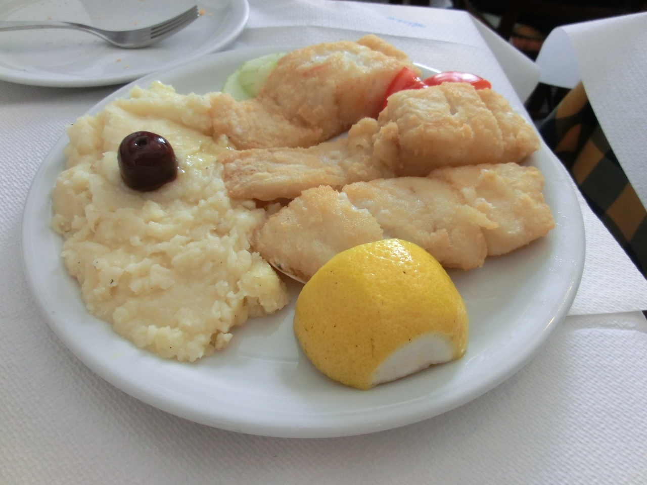 白ナスはサントーリーニ名物だそうです。マヨネーズのようなソースであえてあり、これもおいしかったです。